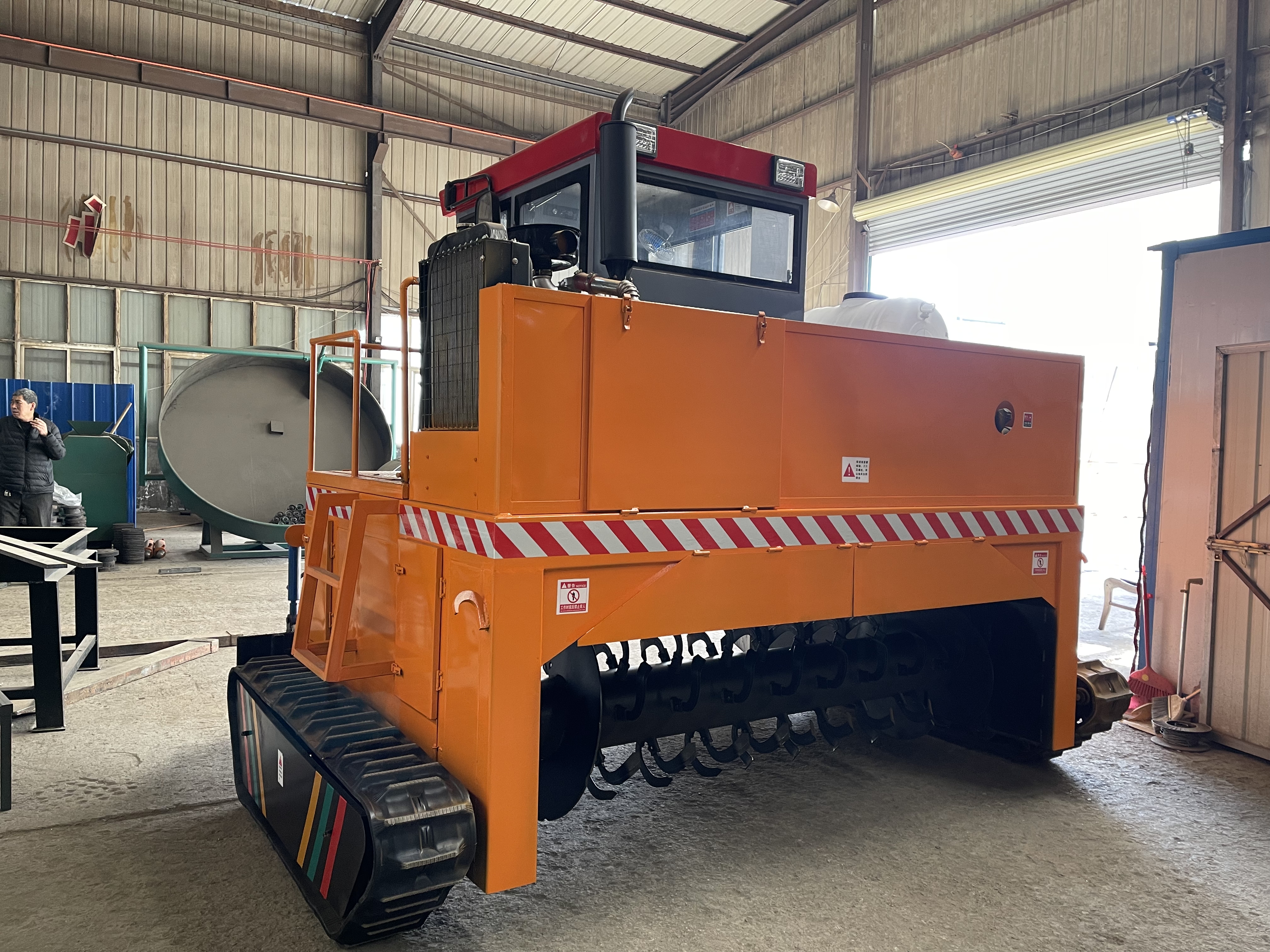 FDJ-L3000履帶式翻堆機(jī)屬大型翻堆機(jī)的一種,全液壓操作系統(tǒng),拉桿式方向盤(pán)操作,履帶式行走,結(jié)實(shí)耐用,動(dòng)力強(qiáng)勁,技術(shù)先進(jìn),產(chǎn)量大、翻拋能力強(qiáng),翻拋滾筒液壓升降調(diào)節(jié),自動(dòng)化程度高,操作簡(jiǎn)單易掌握。是有機(jī)物料耗氧發(fā)酵轉(zhuǎn)化成有機(jī)肥的專業(yè)翻拋設(shè)備。